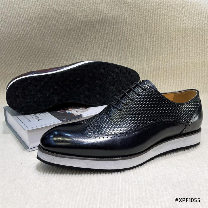 Upper: Genuine Leather (Cowhide) - durable, breathable, and embossed for texture and elegance.